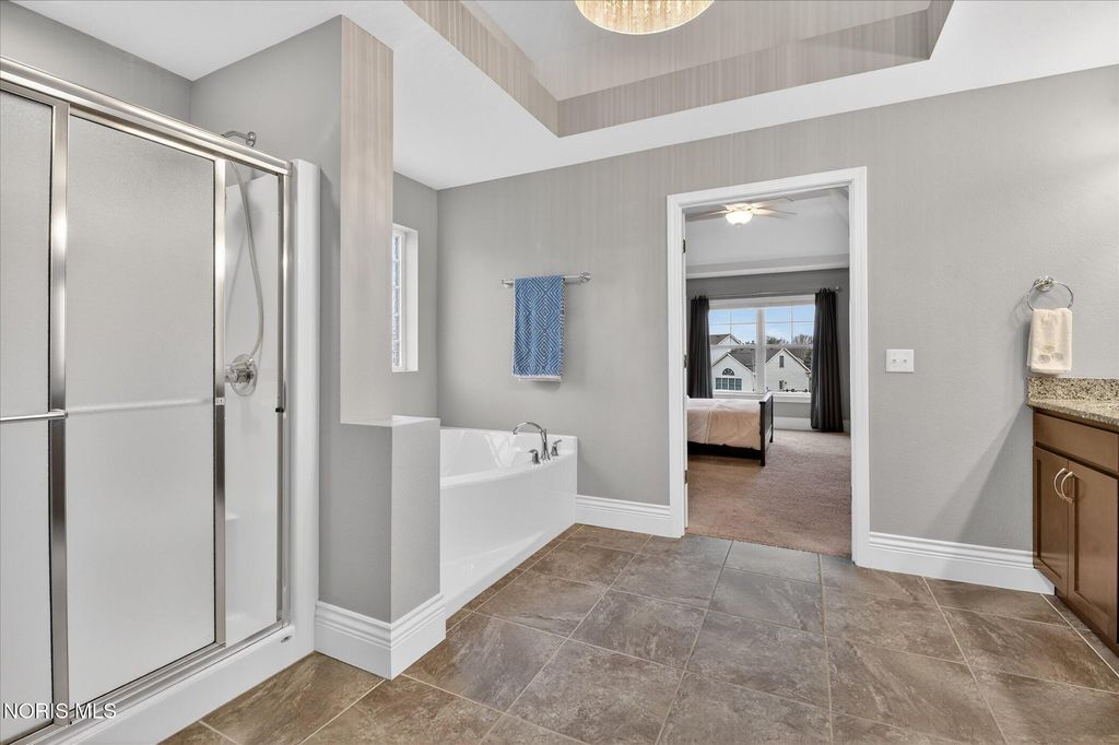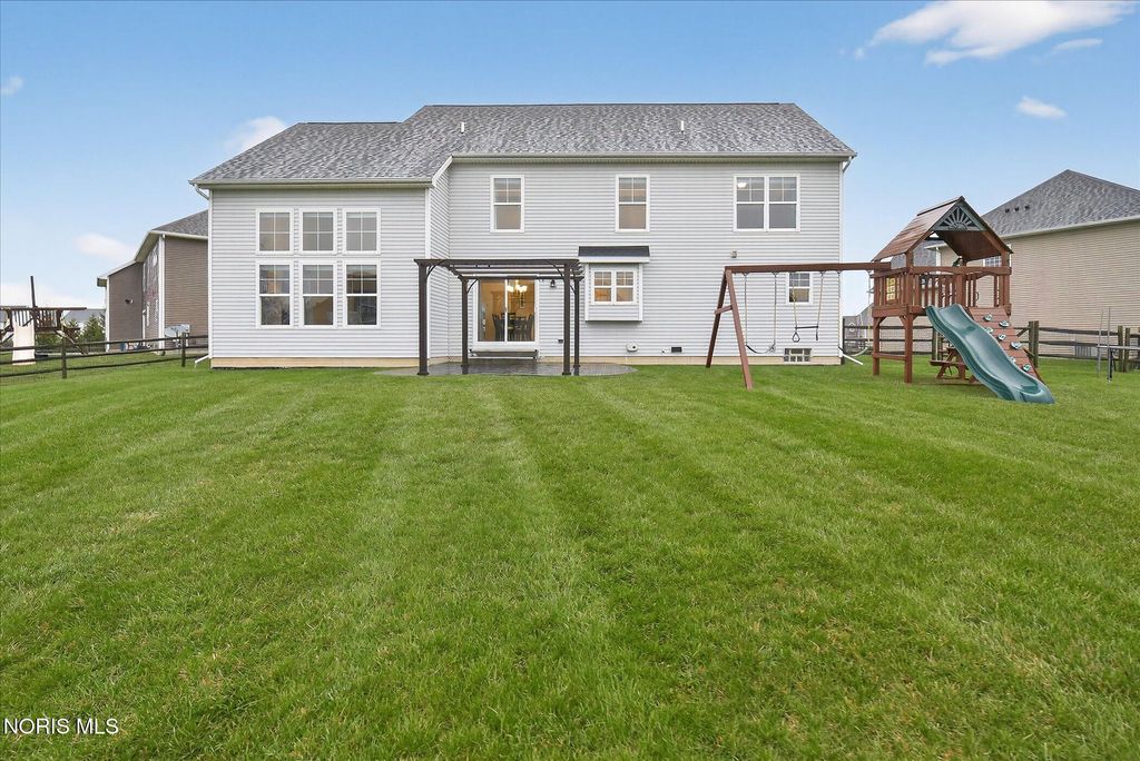 Welcome to 9265 Nate Ct in Sylvania, Ohio. Built in 2015 and offering approximately 2,880 square feet above grade on about 0.4 acres, this 5-bedroom home combines spacious everyday living with thoughtful added functionality. The finished basement is a standout improvement, featuring a guest room with a large closet, a guest bathroom, and additional finished living space with a drop ceiling, carpet, and vinyl plank flooring. Outdoor enhancements include a fenced backyard, finished patio with rubber tiles, and pergola. Additional features include a Wi-Fi thermostat, Ring alarm system, B-hyve irrigation controller, and a cul-de-sac location. A Husqvarna robotic lawn mower may be available separately if desired.