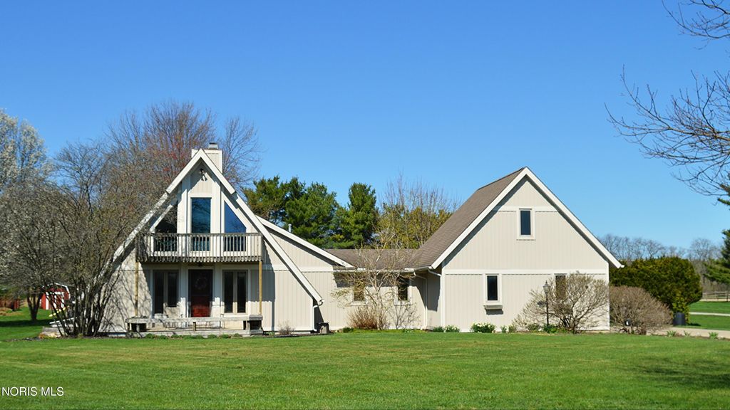 Whether you're looking for a serene River Road retreat, a spacious family estate, or just indifferent with new construction. This classic A-frame offers a unique blend of natural beauty and suburban convenience. Built in 1992, seated on a sprawling 1.1-acre lot, this 3 bed 3 bath home's architecture strikes a commanding profile. Featuring classic lines and high-quality materials that honor the traditional aesthetic of the region. The grounds framed by mature hardwoods and stunning landscaping, vibrantly change with the seasons. A grand foyer sets a tone of timeless understated luxury with its massive brick fireplace; serving as a focal point for cozy evenings. The interior is defined by an open, airy floor plan that maximizes stunning views from every room. Natural light pours through expansive, floor-to-ceiling windows, illuminating the pergo floors and custom millwork found throughout the main level. The gourmet kitchen is a chef's dream, meticulously designed with high-end stainless steel appliances, custom cabinetry, and premium granite countertops. A large center island provides space for meal preparation, casual gathering, and a peaceful spot to enjoy mornings / sunrises. For more formal occasions, the elegant dining room provides an intimate atmosphere for hosting dinner parties and holiday celebrations. The main floor master can be a peaceful environment to unwind, with a walk-in shower, dual vanities, and a private sitting area. Large closets ensure that storage is never an issue. The sophisticated upstairs suite has a very adaptable large floor plan and generous closet space; has served as the home office/remote work area in recent years. An elegant breezeway connects the main residence to the attached 2 car garage. The oversized composite rear deck was specifically designed for the entertainer. Lots of room for multiple seating arrangements and outdoor dining sets. It serves as an elevated stage for summer BBQs, sunset cocktails, and starlit gatherings. Get your buyers through this rare opportunity to own a true gem in a prime location along the scenic Maumee River corridor. Located in the highly sought-after Waterville community, this home is minutes away from Side Cut Metropark. Easy access to boutique shopping, and top-rated Anthony Wayne schools. 10 mins from I-75