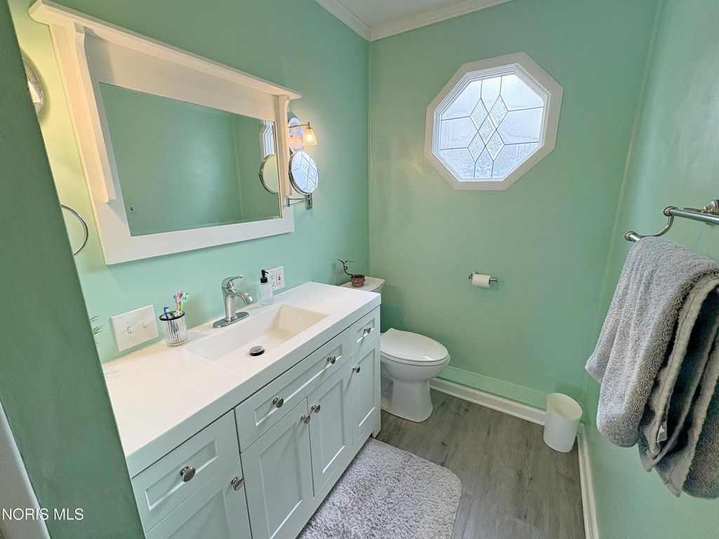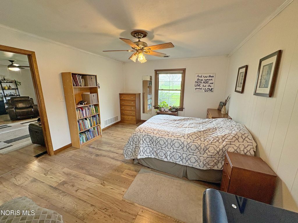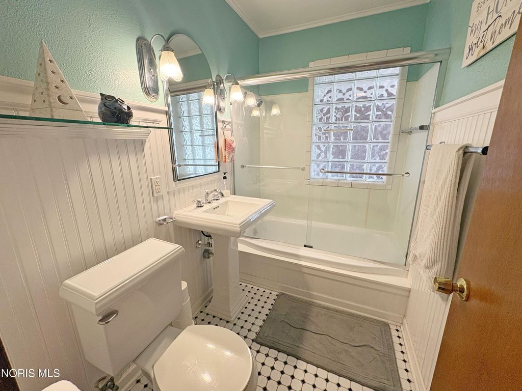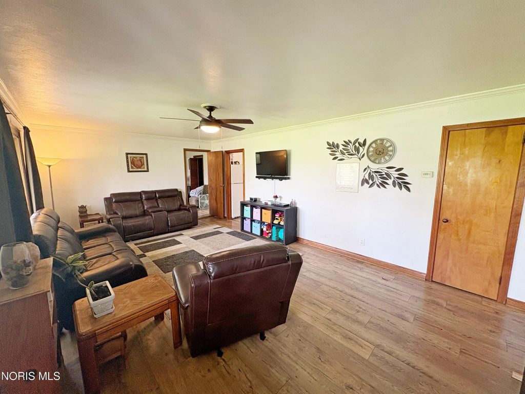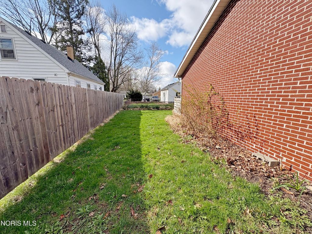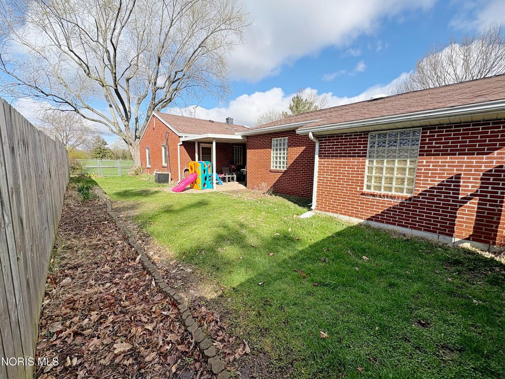 3 bedroom 2 full bath BG brick ranch with golf course views! Welcoming entry into spacious Living Room featuring bay window, crown molding and newer flooring. Lovely updated eat in kitchen boasts granite countertops, 42 inch cabinetry and pantry with pull out drawers. BIG Primary Bedroom with huge walk in closet and newly renovated ensuite (2025) - new vanity, shower, toilet, flooring and lighting. Updated hall full bath with pedestal sink, glass block and tub/shower combo. Covered rear patio opens to backyard with privacy fencing, plus additional green space with compost area. Attached XL 2.5 car garage - the ideal parking, storage or hobby space. New furnace 2023, water heater 2019. Excellent central BG location adjacent to BG City Park and golf course!