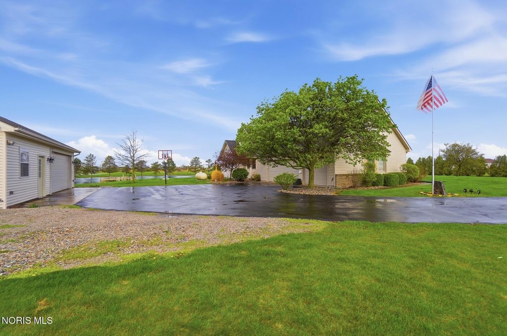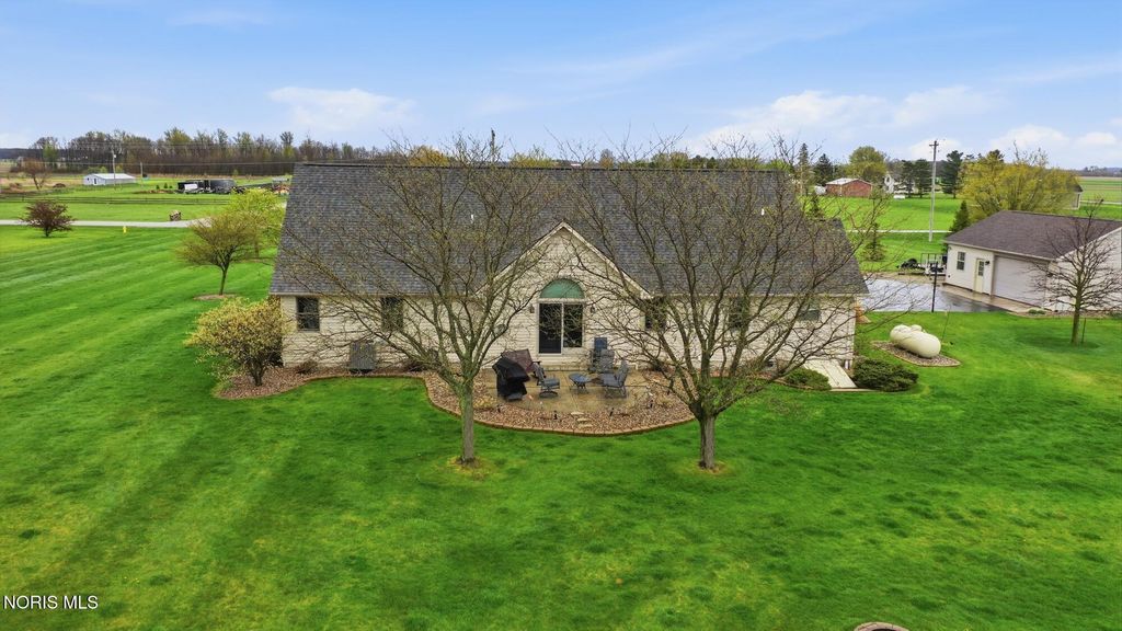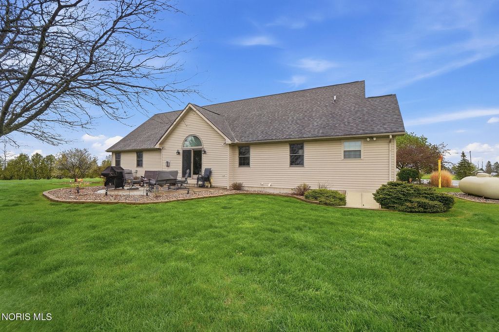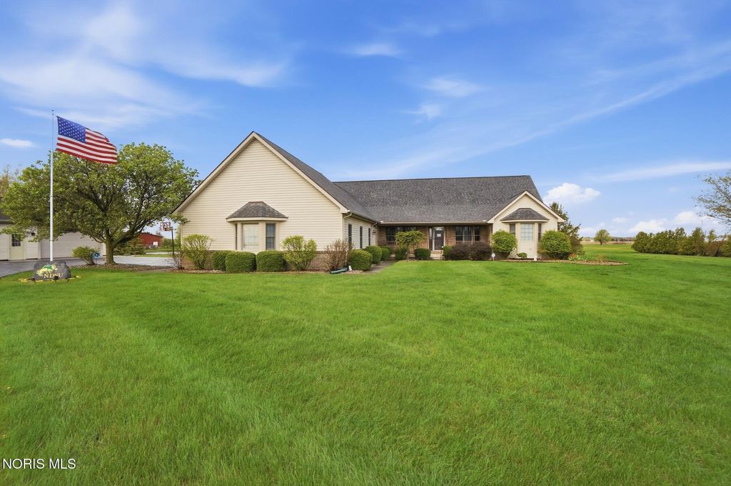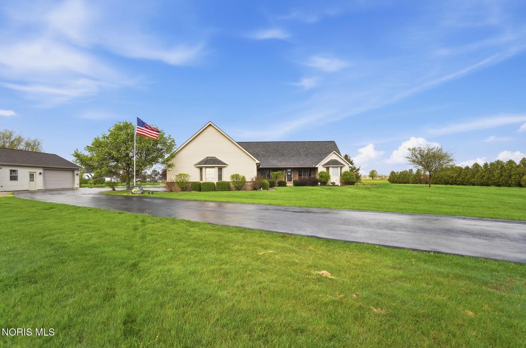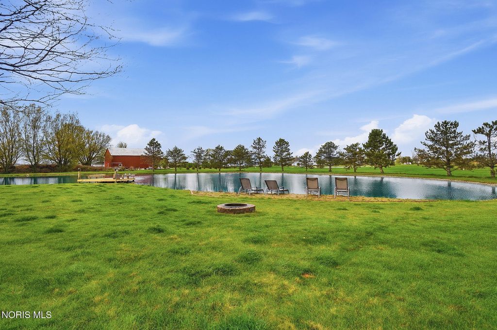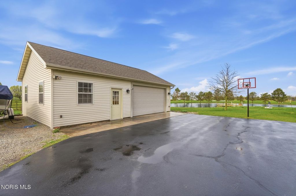 Welcome to your private country retreat, set on 4.1 scenic acres just outside Bowling Green. This beautifully maintained 4 bedroom, 3 1/2 bath home offers the perfect blend of space, updates, and outdoor living. Inside, you'll find 2,525 square feet of well-designed living space, including a spacious layout, a cozy gas fireplace, and a finished basement complete with a newly added half bath, ideal for entertaining, hobbies, or additional living space. Recent updates provide peace of mind and modern comfort, including a new roof (2025), HVAC system (2024), and updated LVP flooring (2024). The kitchen features newer appliances with a refrigerator and dishwasher replaced in 2023. Step outside and experience everything this property has to offer. The fully stocked pond, featuring walleye and perch, includes a brand new dock and even a sandy beach area, creating your own private outdoor escape. The acreage is enhanced with producing fruit trees (apple and peach), a strawberry patch, and a yard irrigation system servicing the front, sides and backyard all the way to the pond. An electric dog fence is already in place for added convenience. Car enthusiasts, hobbyists, or those needing extra storage will appreciate the oversized 3 car attached garage, and an additional workshop/outbuilding. This rare property combines peaceful country living with thoughtful updates and incredible outdoor amenities...truly a one of a kind opportunity. Showings begin May 1st. Don't miss your chance to experience it firsthand!
