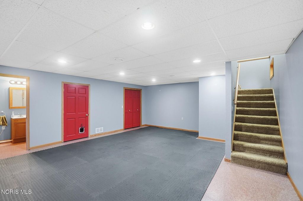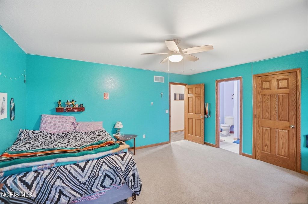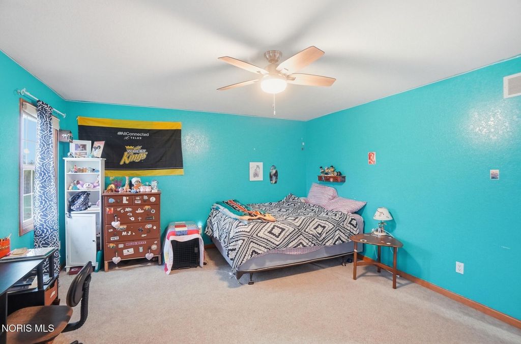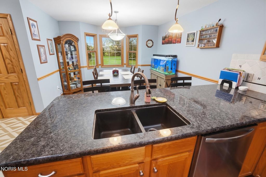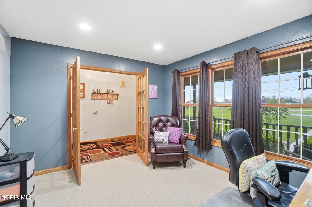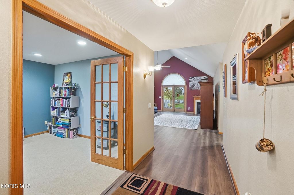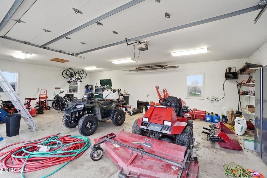 Welcome to your private country retreat, set on 4.1 scenic acres just outside Bowling Green. This beautifully maintained 4 bedroom, 3 1/2 bath home offers the perfect blend of space, updates, and outdoor living. Inside, you'll find 2,525 square feet of well-designed living space, including a spacious layout, a cozy gas fireplace, and a finished basement complete with a newly added half bath, ideal for entertaining, hobbies, or additional living space. Recent updates provide peace of mind and modern comfort, including a new roof (2025), HVAC system (2024), and updated LVP flooring (2024). The kitchen features newer appliances with a refrigerator and dishwasher replaced in 2023. Step outside and experience everything this property has to offer. The fully stocked pond, featuring walleye and perch, includes a brand new dock and even a sandy beach area, creating your own private outdoor escape. The acreage is enhanced with producing fruit trees (apple and peach), a strawberry patch, and a yard irrigation system servicing the front, sides and backyard all the way to the pond. An electric dog fence is already in place for added convenience. Car enthusiasts, hobbyists, or those needing extra storage will appreciate the oversized 3 car attached garage, and an additional workshop/outbuilding. This rare property combines peaceful country living with thoughtful updates and incredible outdoor amenities...truly a one of a kind opportunity. Showings begin May 1st. Don't miss your chance to experience it firsthand!
