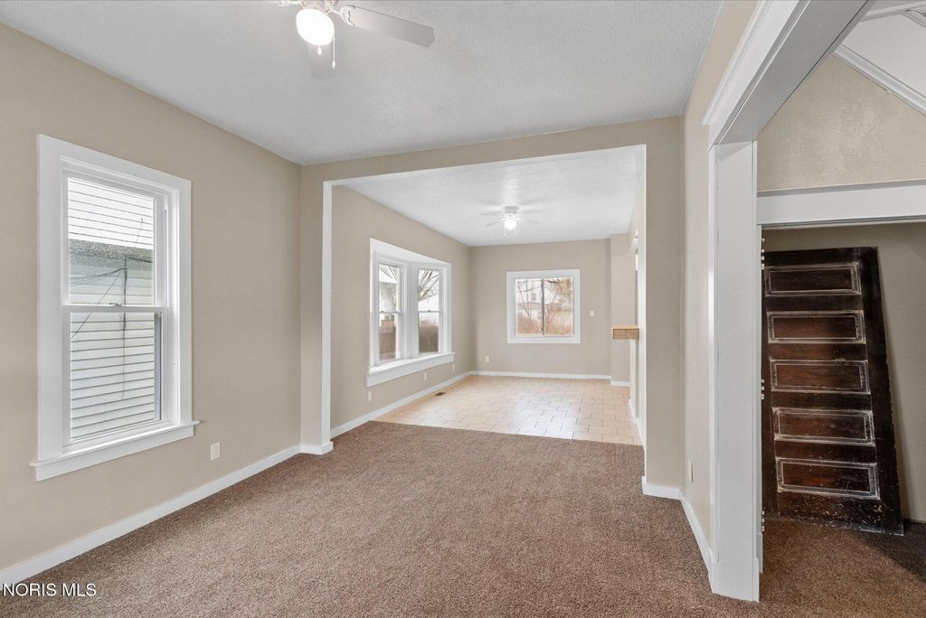 Welcome to this inviting property in the heart of East Toledo. The bright foyer opens to a spacious living and dining room combo. The dining area includes a charming bay window, ceramic tile floors that extend into the eat-in kitchen, and an awesome bar-top peninsula, with new light fixtures, that?s perfect for casual dining. Make your way upstairs from the kitchen or the foyer with the split staircase. Upstairs features 3 bedrooms, an office/ 4th bedroom, and the updated restroom. The primary bedroom is massive and includes a large closet. News Include: Furnace, Hot Water Tank, Insulation, Drywall, and windows.