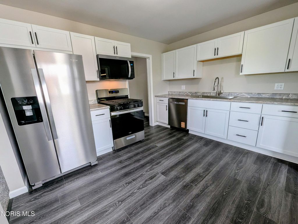 Get ready for this beautifully updated 2-bedroom, 1 bath home near Archbold schools and parks. Stylish improvements from top to bottom! Crisp white NEW cabinetry, countertops, flooring and all NEW appliances which stay! Fresh paint throughout, new carpeting and complete NEW 3-piece bathroom. All new waterlines, furnace 2019. NEW roof and gutters 2026!! Back yard is mostly fenced in. There are 2 storage units at the back of the property. So many updates to list. This one level home is waiting for you!