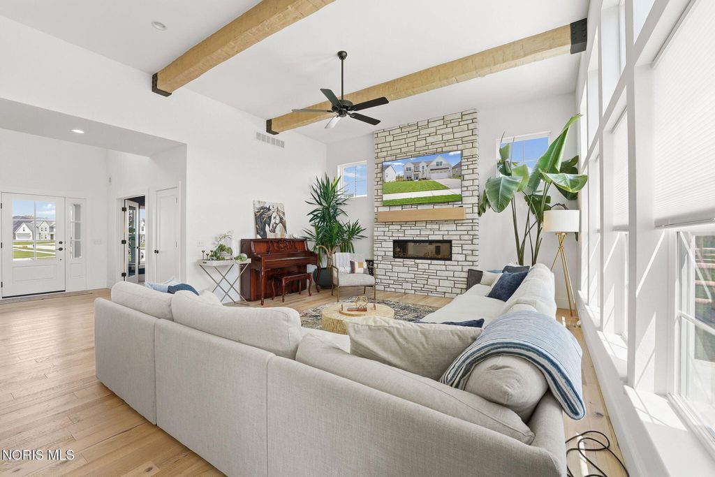 Better than new! This beautifully upgraded home offers a perfect blend of style, functionality, and modern design. Featuring a desirable open floor plan, the heart of the home showcases a stunning kitchen with oversized island, stainless steel appliances, a spacious walk-in pantry with upgraded shelving, and a separate dining area all flowing seamlessly into the great room, highlighted by a soaring volume ceiling, striking exposed beams, and tons of natural light. A dedicated home office provides an ideal space for remote work or quiet study. The primary suite is a true retreat, complete with dual closets and a luxurious private bath featuring an oversized custom tile shower and double vanity. Designed with everyday convenience in mind, the home includes a separate laundry room with additional storage and an adjacent mudroom outfitted with custom cubbies"”perfect for organizing daily essentials. The basement offers excellent potential for future expansion, already plumbed for a full bath and partially drywalled. The unique three car tandem garage is ideal for storing multiple vehicles, outdoor equipment or creating a workshop space. Step outside to enjoy the fenced backyard, complete with a private patio"”ideal for relaxing or entertaining. Recent upgrades include fence, professional landscaping, exterior lighting and window treatments.
