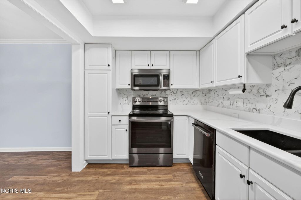 Located at beautiful Versailles in the Woods, this Sylvania condo is now available and has nearly $70,000 worth of upgrades and improvements! *ALL NEW flooring, fresh paint, brand new kitchen, gorgeous new ensuite in large primary bedroom features a double vanity, beautiful tile work and a walk-in shower with a built in seat! Walk in closet. White cabinet kitchen with marble backsplash. One of the rare condos with a walk up storage room in the unit. Washer and dryer in unit will stay. Sliding glass door takes you to your own private balcony. 2nd floor views allow you to see plenty of deer, while enjoying the sunset. Create lifetime memories with family and friends while enjoying the private outdoor space, with beautiful heated pool surrounded by trees and lush landscaping. Make your life easier and go maintenance free! Water is included, snow care, yard care, pets 35 pounds and under are welcome. Close to golf course, country club, and great restaurants. This lifestyle is waiting for you! Brand new roof in 2025. Contact Mary for a private showing, 419-787-1273.