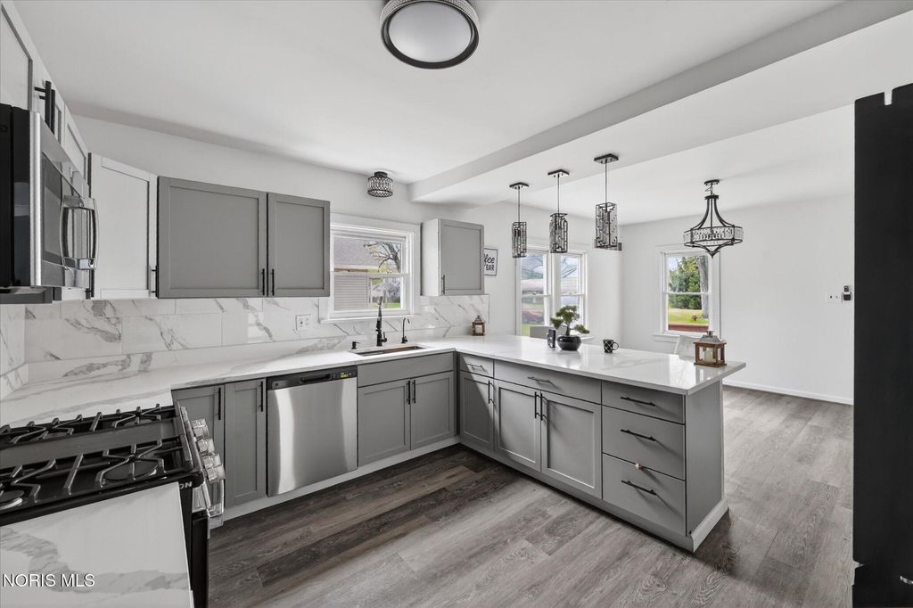 Feel right at home the moment you step into the bright, welcoming sunroom filled with natural light. This completely renovated home offers an open concept connecting the living, dining, and kitchen spaces"”perfect for everyday living and entertaining. The kitchen is completely new with stainless steel appliances, a large island, new cabinetry, backsplash, and flooring. Features a 1st floor primary bedroom, 2 full baths and laundry room. Two large bedrooms upstairs with extra storage. Updates include all new lighting, flooring, and electrical box. Basement for lots of storage. Enjoy front and back decks, a 1.5 car detached garage, utility shed, city water, and a convenient location.