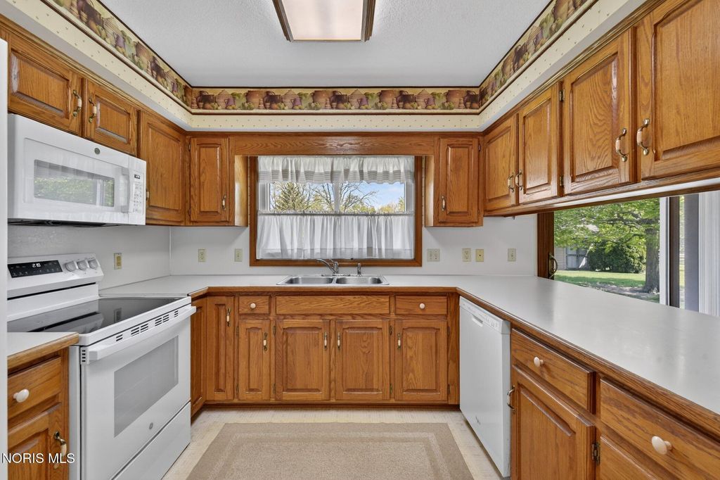 Quality built brick ranch with a smart, functional layout. Primary suite is separated from two additional bedrooms and full bath for privacy. Formal living and dining at the front, with an eat-in kitchen and family room at the back. Family room features cathedral ceilings, a floor-to-ceiling stone wood-burning fireplace, and slider to a concrete patio overlooking a large yard with no rear neighbors and shed for storage. Kitchen offers both a dedicated eating area and breakfast bar seating for 4. A 2-car attached garage with attic storage. Located in a quiet subdivision close to Metroparks, shopping and the hospital. Possession at closing.