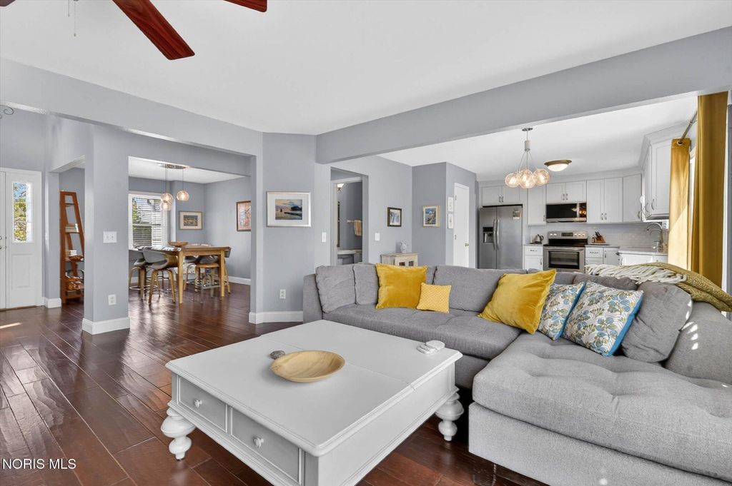 Step into this beautifully updated three-bedroom 2½-bath home set on a spacious, private lot. From the moment you enter the foyer, you'll notice the cherry hardwood floors that continue into the dining room"”an inviting space that can easily serve as a den or additional living area.The eat-in kitchen, fully renovated in 2018, features Italian porcelain tile, Cambria quartz countertops, stainless steel appliances and a pantry. Just off the kitchen, the laundry room also includes durable tile flooring. The family room offers warmth and comfort with cherry hardwood floors, a gas fireplace, and serene views of the fenced backyard. The primary bedroom is a relaxing retreat with hardwood floors, a ceiling fan and a walk-in closet. Its en-suite bath was updated in 2026 with stylish new fixtures and lighting. One secondary bedroom showcases cathedral ceilings and LVT flooring and is currently used as an art studio, while the third bedroom includes a walk-in closet, LVT flooring, and a ceiling fan. Additional highlights include an unfinished basement ideal for storage, a Trane A/C and furnace (2016), and a water heater (2018). Outdoor living is just as impressive with a new deck (2020), a stone patio with a firepit, and a fully fenced backyard"”perfect for entertaining or relaxing in privacy.