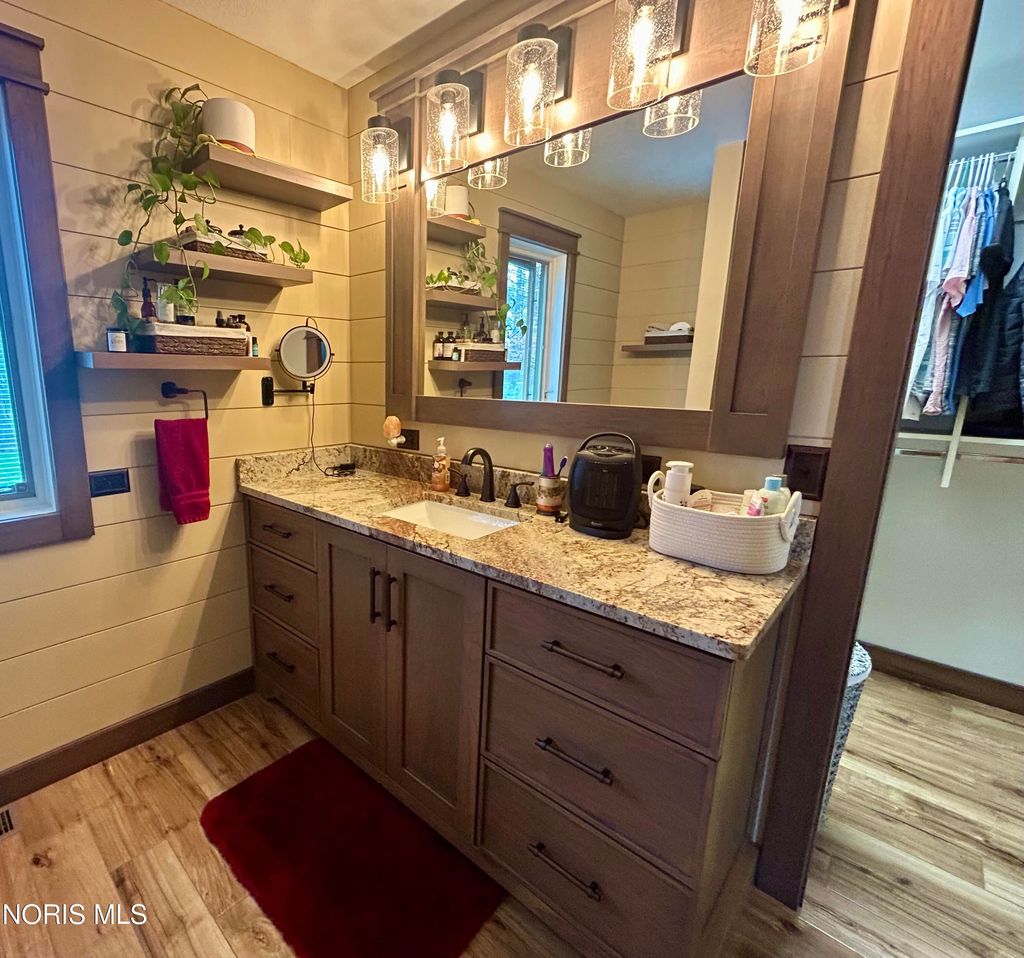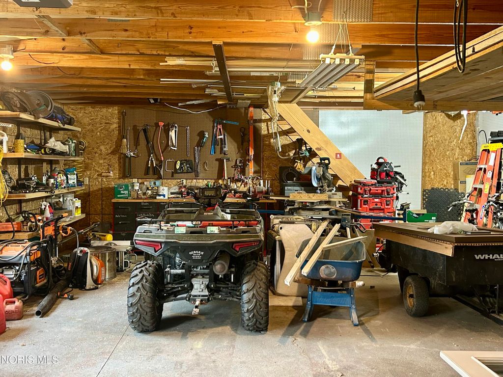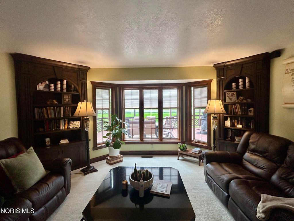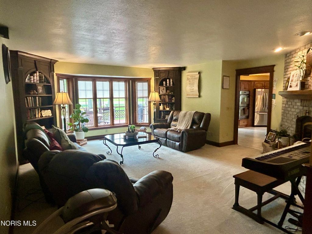 Beautiful home with pond views in a wooded setting and Maumee River access! Nestled in a peaceful, wooded setting, this inviting ranch home offers a rare combination of features you won't find just anywhere. A long, sweeping drive leads you to a beautifully maintained & landscaped home surrounded by dense hardwood and fruit trees, a 1/3-acre pond, an amazing garden with its own custom shed, an additional outbuilding & included river front access totaling 12 acres of seclusion & escape. Built in 1993, this 1997 sq foot home features an inviting foyer with hardwood floors and custom wainscoting that leads to a quaint living room with specially crafted built ins, a bay window that captures the back yard view, and a large wood burning fireplace. The eat-in kitchen highlights a vast assortment of hickory Harlan cabinetry, custom bar-island with granite countertop, back splash and stainless-steel appliances which opens to the four-season sunroom perfect for reading or relaxation. As you make your way towards the bedrooms, your eye catches the custom woodwork, trim and details that make this home exquisite. Starting with the vaulted-ceiling master suite, the bath and walk-in closet have been recently remodeled with updated granite, tile shower and ceramic tile flooring. The two remaining bedrooms have been updated as well with new doors, trim and flooring in addition to custom closet organization. Pella casement windows allow for much natural light and other upgrades include a new roof in 2013, new central air unit and furnace in 2017, new 40-gal water heater in 2025. The welcoming outdoor space offers a comfortable deck and patio area overlooking the backyard and pond; the fenced in garden is politely protected against the wildlife that venture in to help themselves to the fruit trees & vegetables and a custom 12x24 garden shed that awaits your tools, pots & creativity. The 24x30 pole barn has loft storage, concrete & insulation offering an option for storage, hobbies or the perfectly outfitted mancave. Bring your kayaks, coolers & fishing poles ... the Maumee River awaits and summertime is just around the corner! Call us for a tour - and feel all that this property has to offer.