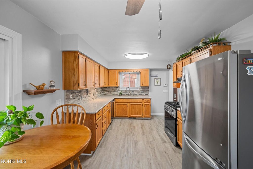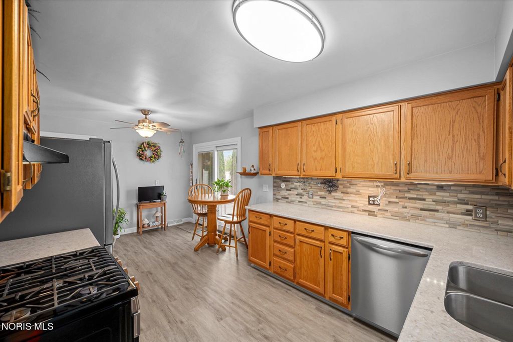 Welcome to this exceptionally well-maintained 2-bedroom ranch in desirable Point Place, offering a blend of comfort, charm, and smart updates. The bright, eat-in kitchen features stainless steel appliances, hard-surface countertops, and a tiled backsplash, all anchored by a quality sliding door that fills the space with natural light and opens to a fenced backyard"”perfect for relaxing or entertaining. Both bedrooms showcase original hardwood floors in immaculate condition and include walk-in closets with custom systems for easy organization. A cedar closet in the hallway adds a thoughtful touch, while the whole house attic fan provides energy-efficient cooling and year-round comfort. The full basement extends your living space, with much of it already finished"”ideal for a rec room, home office, or workout area. Glass block windows offer added security and peace of mind. A 2-car detached garage completes the package. A move-in ready home with character and functionality in a sought-after location"”don't miss it.