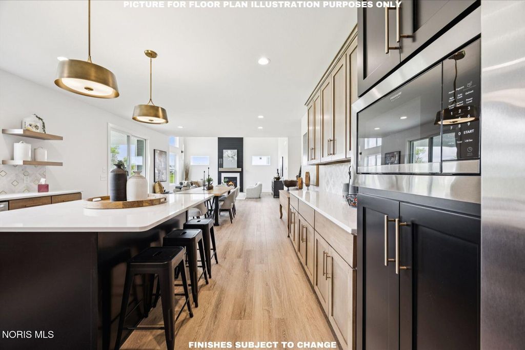 This brand new home built by Buckeye boasts a grand open-concept layout for modern living. The 2-story great room features a grand floor-to-ceiling stone surround fireplace and breathtaking over-sized windows. The chef's kitchen is a dream, offering endless Sahara Veil quartz countertop space, tiled backsplash, an over-sized accented island, three bright windows right over the sink, built-in appliances and a custom solution walk-in pantry. There is a room for everyone with an Owners Ensuite and a Junior Ensuite. The Owners Ensuite bathroom gives spa-like relaxation with a double glass wall enclosed Calcatta Gold tiled shower and a stand alone tub.Multiple walk-in closets throughout. Don't forget about the covered patio. Designed for style and functionality, this home is perfect for your lifestyle. Walking distance to Levis Commons!