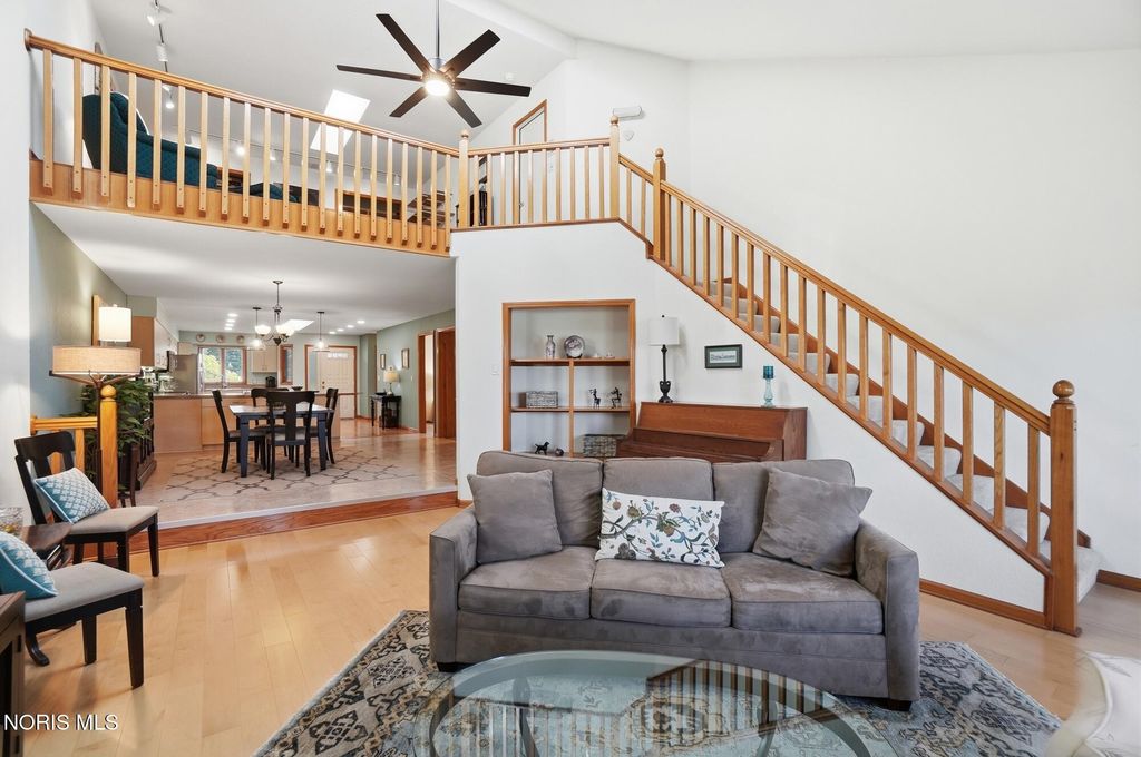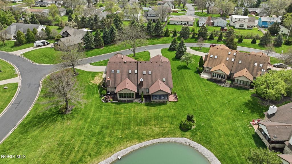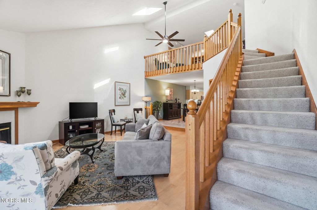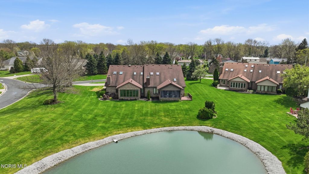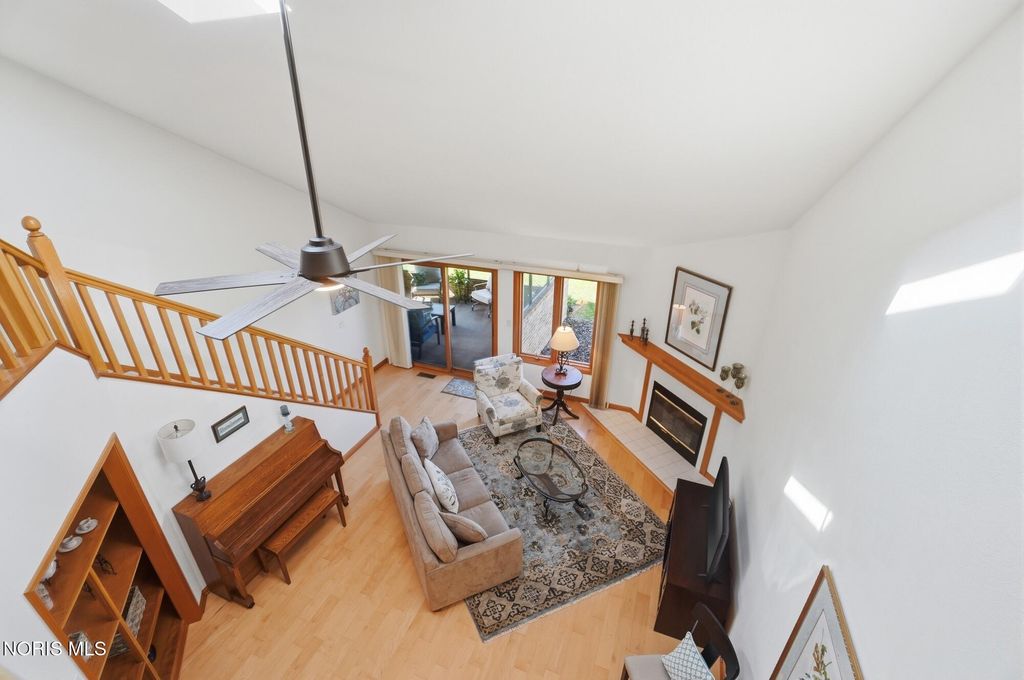Beautifully updated open concept Ashbury Hills Villa in BG! Lovely updated kitchen boasting large island, skylight, stainless appliances, bar seating and opens to the formal Dining Room - ideal space for entertaining! Amazing Living Room features Cathedral Ceilings, wood fireplace, built in shelving and slider to backyard. Tranquil rear screened porch with attached open air deck and peaceful pond views! First floor primary bedroom with vaulted ceiling & updated ensuite (new vanity, toilet, sink, lighting, shower door). Guest bedroom and updated full bath complete the first level. Second floor features a sunny loft overlooking the Living Room with dual skylights & walk-in attic access (providing excellent storage & easy accessibility). Loft space could be used for 3rd bedroom. New furnace & A/C, Kitchen lighting, North-facing bedroom windows, 2021. Garage door opener, 2022. New washer/dryer and oven, 2023. Bedroom carpet, 2024. New water heater, both bathrooms remodeled, 2025.