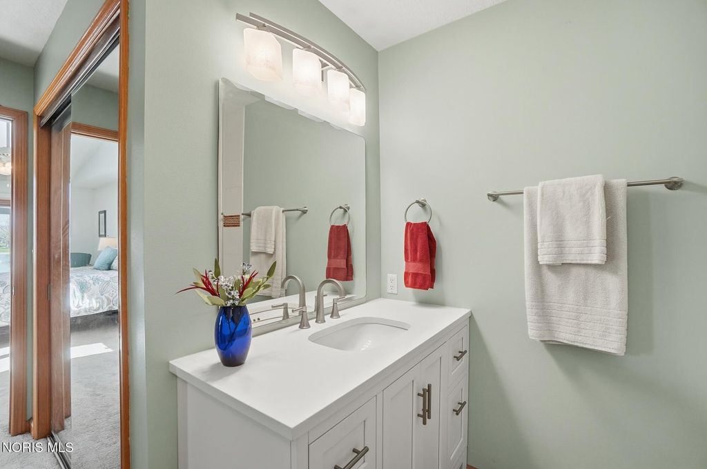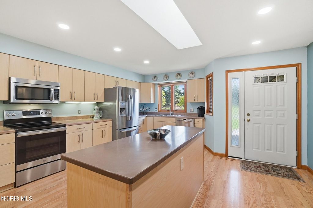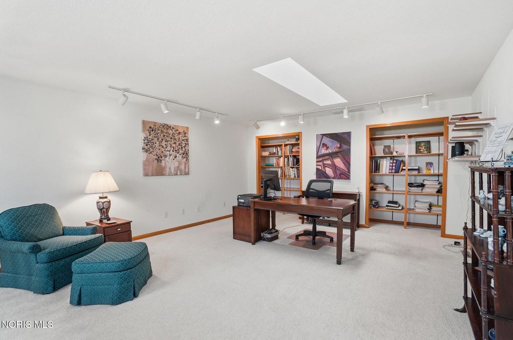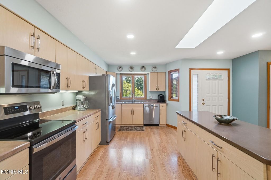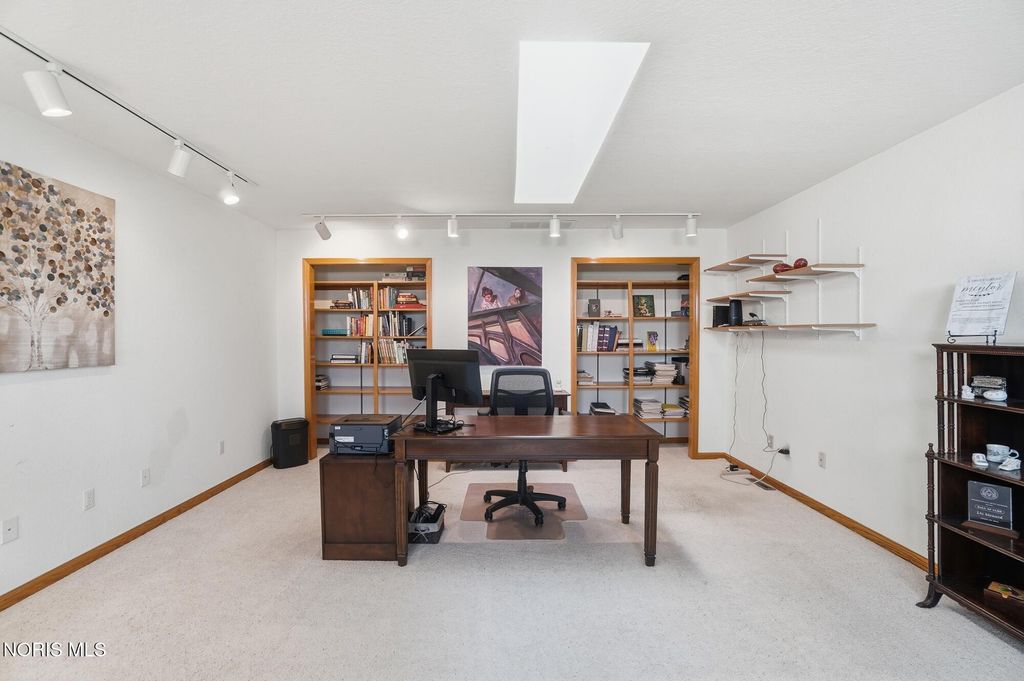 Beautifully updated open concept Ashbury Hills Villa in BG! Lovely updated kitchen boasting large island, skylight, stainless appliances, bar seating and opens to the formal Dining Room - ideal space for entertaining! Amazing Living Room features Cathedral Ceilings, wood fireplace, built in shelving and slider to backyard. Tranquil rear screened porch with attached open air deck and peaceful pond views! First floor primary bedroom with vaulted ceiling & updated ensuite (new vanity, toilet, sink, lighting, shower door). Guest bedroom and updated full bath complete the first level. Second floor features a sunny loft overlooking the Living Room with dual skylights & walk-in attic access (providing excellent storage & easy accessibility). Loft space could be used for 3rd bedroom. New furnace & A/C, Kitchen lighting, North-facing bedroom windows, 2021. Garage door opener, 2022. New washer/dryer and oven, 2023. Bedroom carpet, 2024. New water heater, both bathrooms remodeled, 2025.