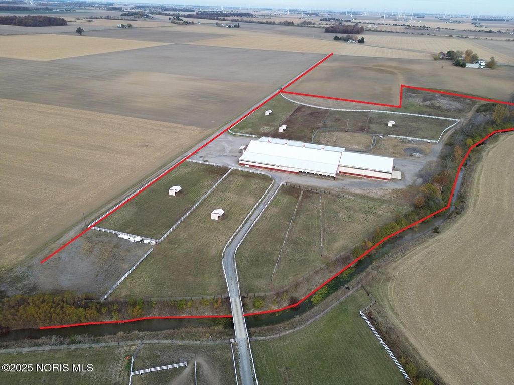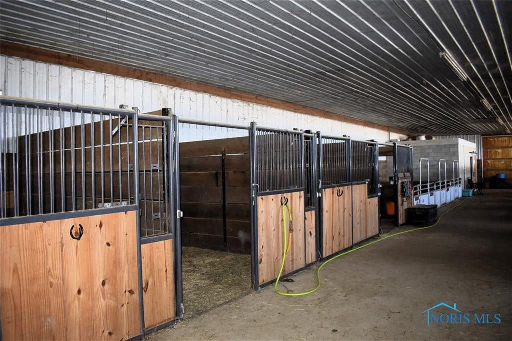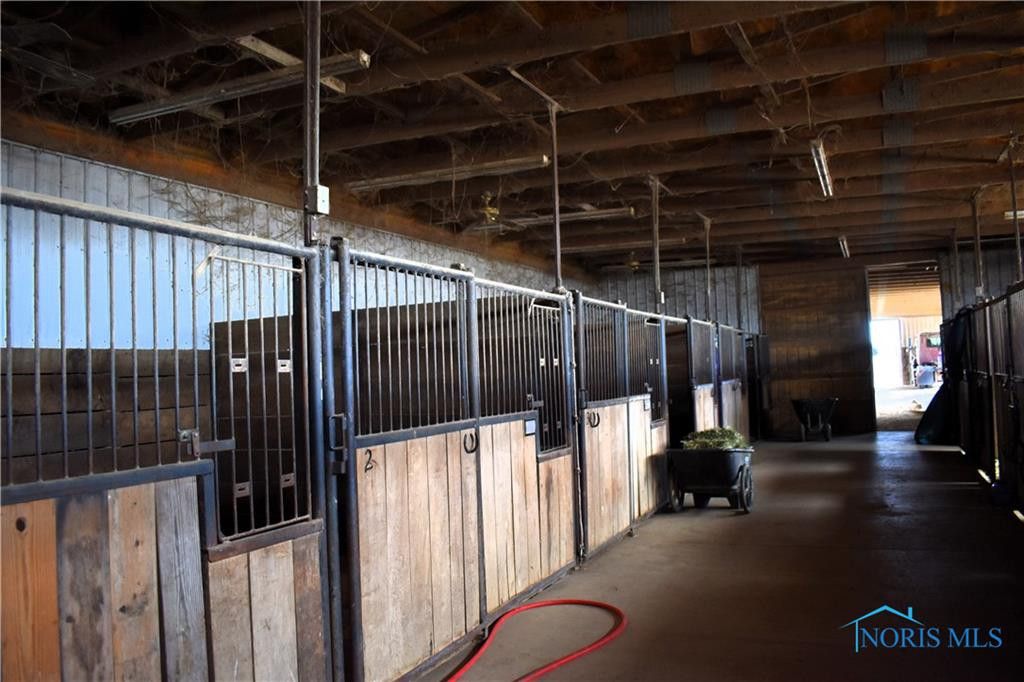 24,000 Sq Ft open span building on 18 +/- acres currently used as equestrian center with 30 stalls. 80' x 200' Indoor arena with 80' x 100' equipment and Hay Storage with tack rooms and 34' 200' lean too for storage or additional stalls. Cross fencing and training pens. Unlimited Ag uses. Building great for machinery storage Van Wert Schools.