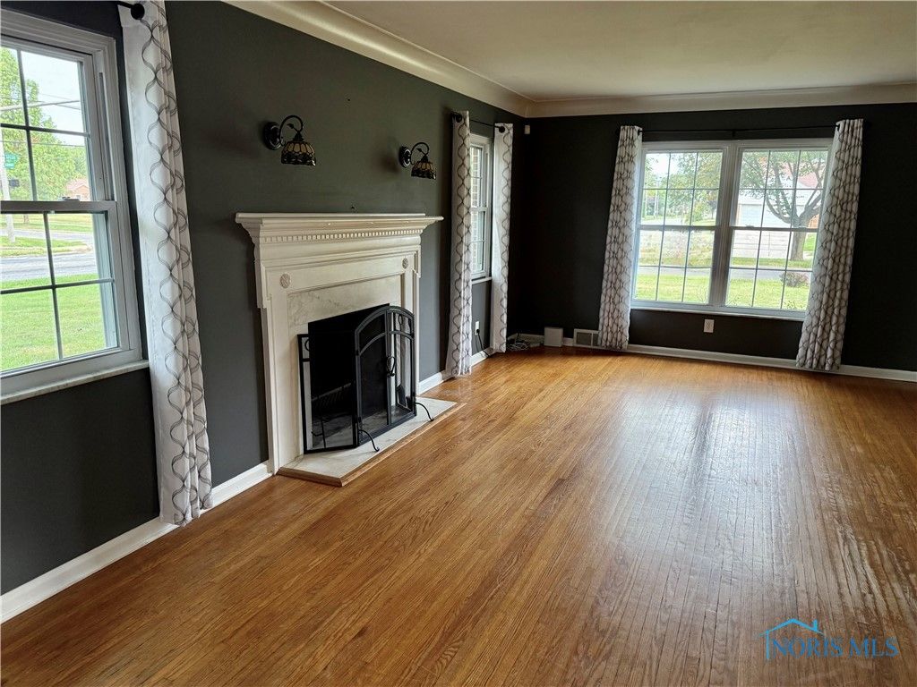 Savor the charm of this classic, full-brick family home, where original character meets modern comfort. Inside, a fresh coat of paint brightens the main living areas, complementing the timeless beauty of the well-maintained original wood flooring that flows through the living room, dining room, and two of the bedrooms. Details like the cozy fireplace, elegant coved ceilings, and sophisticated wainscoting preserve the home's rich history. For convenience, there is a side-load garage and circular driveway as well as a fenced-in backyard. Updates from 2023 - A/C, stove, and hot water heater.