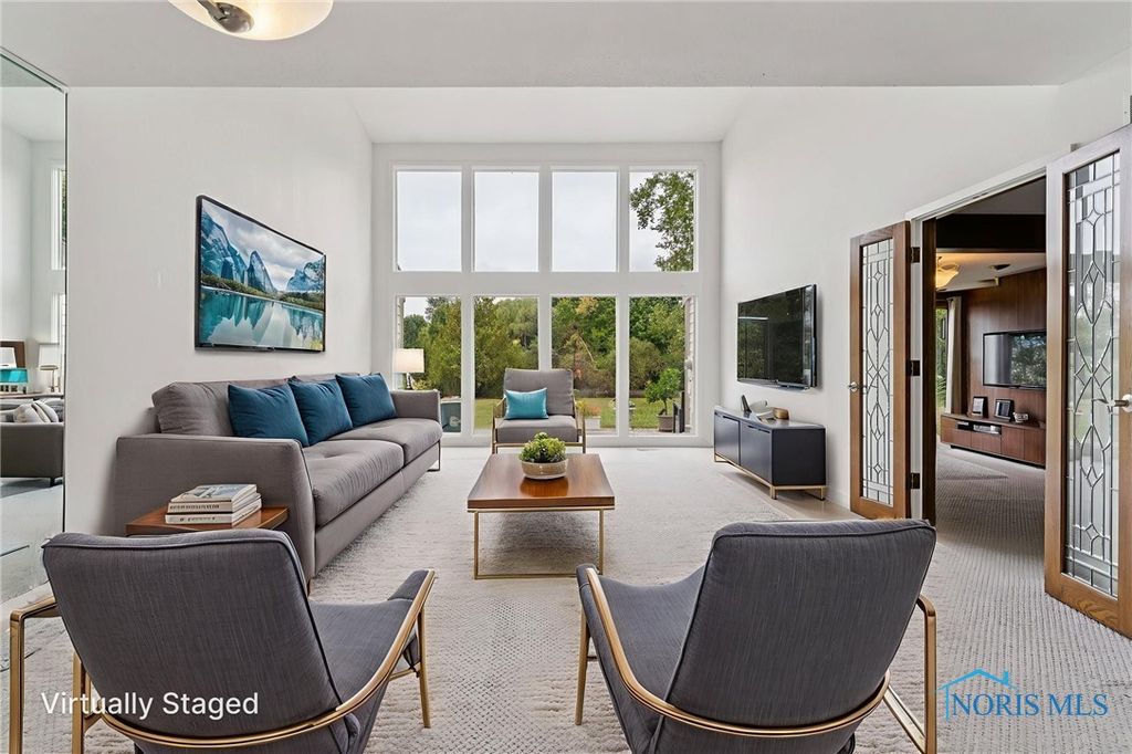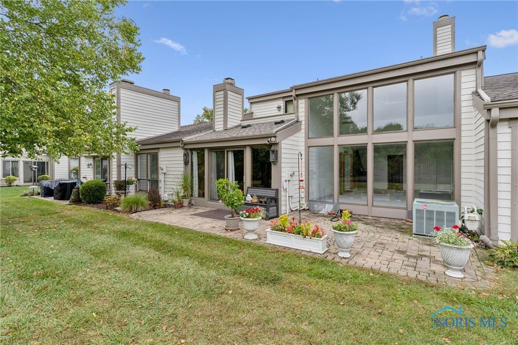 Enjoy easy living at Embassy Court with golf course and pond views. A soaring two-story living room, cozy sunroom, patio, and two fireplaces offer comfort year-round. Main floor features a spacious kitchen, dining with wet bar, laundry, and half bath. Upstairs you'll find two private bedroom suites, while the finished basement adds flexible space with full bath and wet bar. Association amenities include a pool, clubhouse, tennis, and full-service conveniences. Recent updates include stainless appliances and fresh exterior paint.