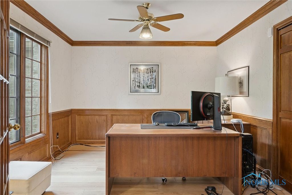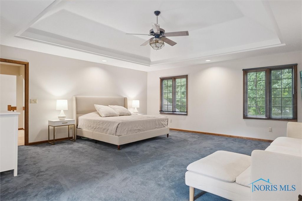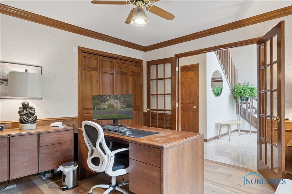 Beautifully maintained nearly 4,000 SF home on a cul-de-sac near schools. Light-filled 2-STY foyer opens to office w/French doors. Replacement lux vinyl floors installed in most of main ('22). Expansive/updated ('16) island, eat-in kitchen w/granite, SS appliances & tile flr, slider to deck flows into vaulted ceiling family room w/FP & built-ins, wet bar. Huge Primary w/his & her walk-in, whirlpool, double vanity. 3 additional beds up w/organized closets & full bath. Finished lower w/bed, bath & storage. Spacious rear deck. Irrigation well & 3-car garage. Toledo City, Sylvania LSD. Get inside!