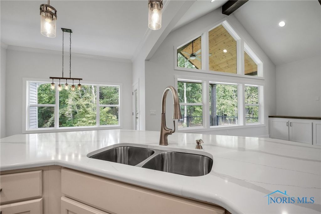 This stunning new Leffler Builders home in Quiet Whitehouse Meadows showcases unmatched craftsmanship and jaw-dropping design. The main living areas feature LVP, wood plank ceilings, natural stained beams, & pan ceilings in every bedroom. Walls of windows with transoms flood the space with light, highlighting the quartz kitchen with in-cabinet lighting and smart appliances. The primary suite offers a walk-in closet with laundry access. Enjoy an elevated covered patio with wooded views, a stamped cobblestone drive, & the highest efficiency mechanicals including a tankless water heater. WOW!
