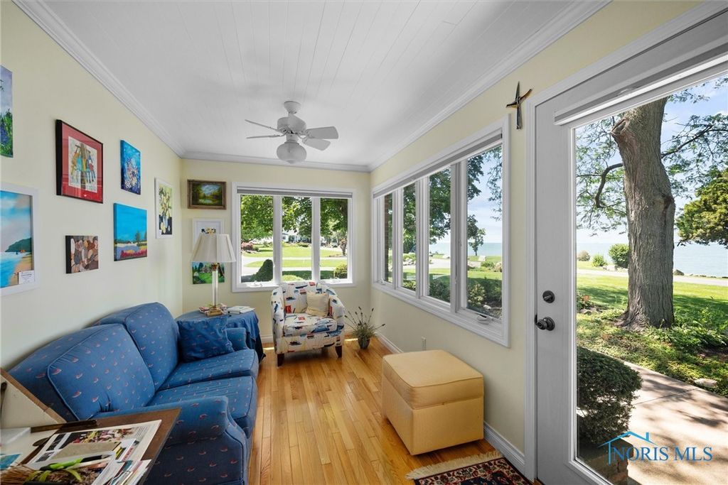 Nestled in the prestigious enclave of Catawba Cliffs & perched above the shimmering waters of Lake Erie, this exceptional residence offers breathtaking panoramic views of the lake and its idyllic islands. Set on .64 acres, this 3-bedroom, 3-bathroom home perfectly blends solid craftsmanship & timeless design. Experience spectacular sunsets from the comfort of your living room, where expansive windows frame nature's nightly masterpiece.