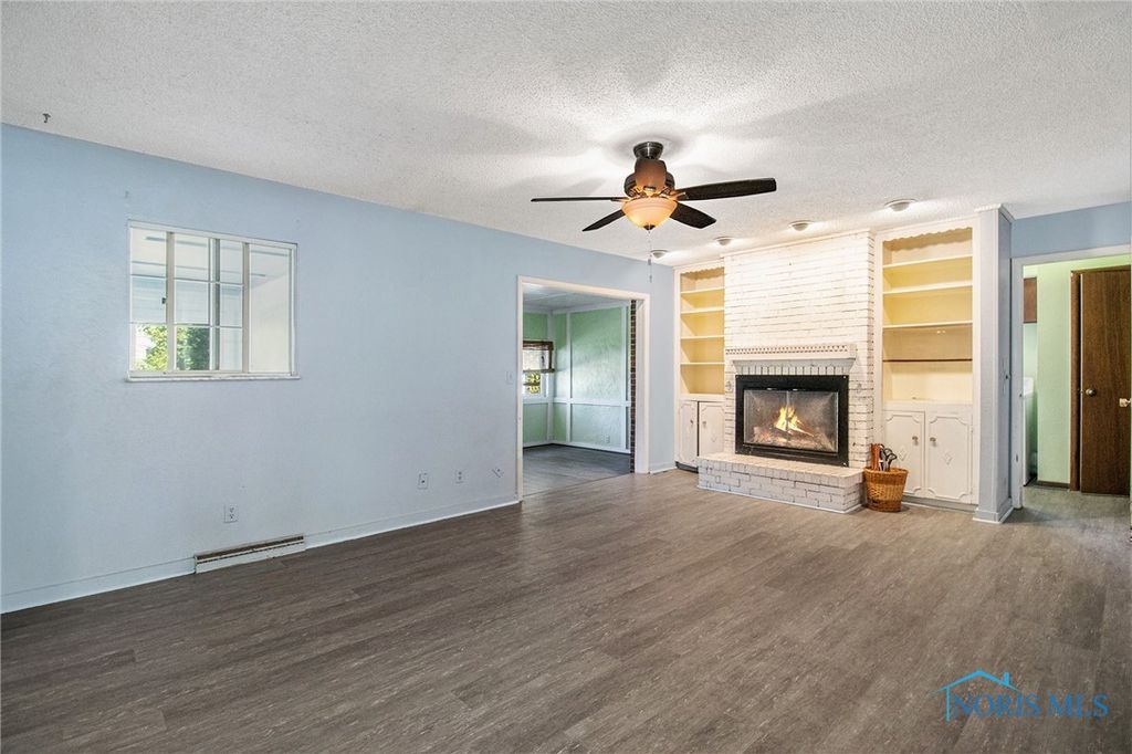 Ranch-style home offering 3 bedrooms and 2 full bathrooms in Swanton. The living room features a fireplace and a functional floor plan includes a kitchen with adjoining dining area and convenient single-story living. Property provides comfortable bedroom space, storage options, and an additional shed in the backyard for extra storage.