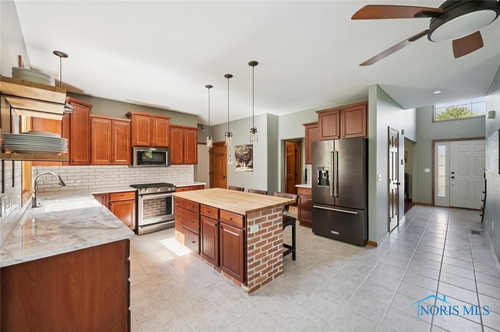 IMMACULATE 4 BR, 3.5 bath, brick beauty in Sylvania Twp! Nearly 3000 sq ft situated on 1/3 acre w/ a side load, 3.5 car garage in Colony Oaks. Spacious FR, updated island kitchen & sunroom offers bright natural light w/ an open floor plan. Formal DR or LR. 1st FL den & laundry. Primary BR w/ ensuite & huge 18x10 walk in closet. 3 add'l BR's-one w/ private bath & walk in closet. Lower level provides add'l living space w/ a rec room & abundant storage. Enjoy the beautiful backyard w/ a water view on the stamped patio w/ a fire pit & pergola. HOA maintains the stocked pond. Sylvania Schools.