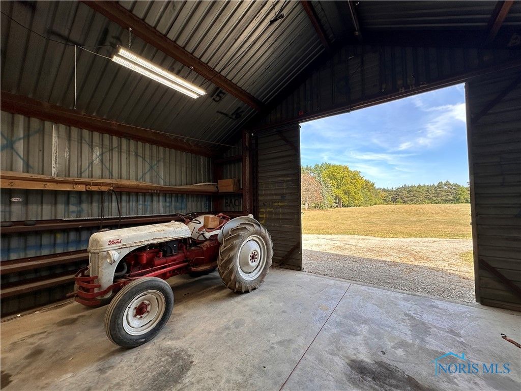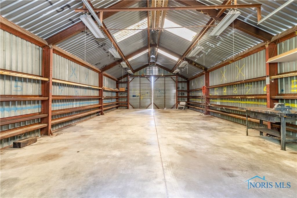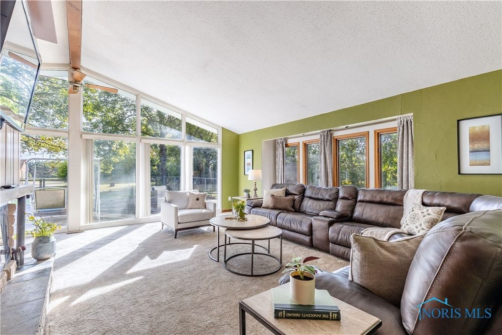 There's a BARN! Country living in the city! Tucked away on nearly 5 acres on a low traffic street, this 3-bed, 2-bath ranch blends warmth & function. Bright natural light fills every room of this home! The vaulted great room wows with wood beams, a sleek electric fireplace, and a full wall of windows framing serene views of the patio, outbuildings, & open land. Enjoy a pole barn with concrete floor, 220 outlet, top-of-the line interior lights & lean-tos PLUS an additional insulated outbuilding and shed. A fenced backyard with fire pit & shade invites year-round enjoyment. All appliances stay!