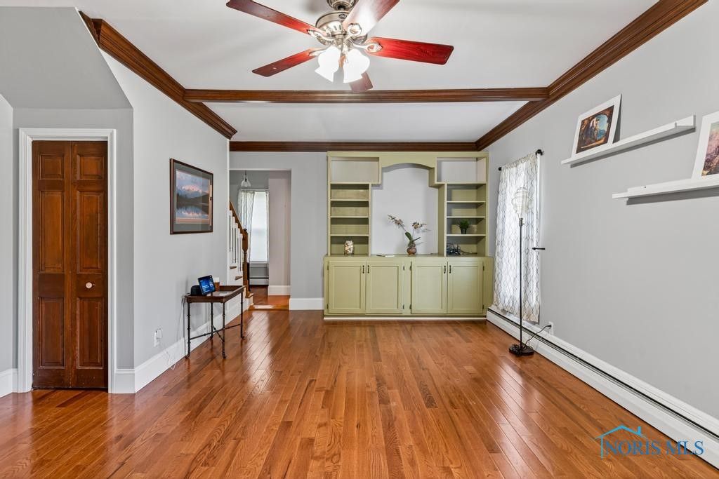 Wonderful Waterville home on 2 parcels. Every inch filled with character & appeal. Hardwood floors in many rooms including the living room with beautiful built-ins and crown molding. You will love the kitchen & adjacent laundry room. The dining room has a raised ceiling and glass door to the fenced backyard and pergola covered patio. Welcoming back entry & enclosed porch. 2 room primary suite has direct access to bathroom. 904 sq. ft. garage/outbuilding. Conrad Park is across the street and Baer Park and Downtown are just a few blocks away.