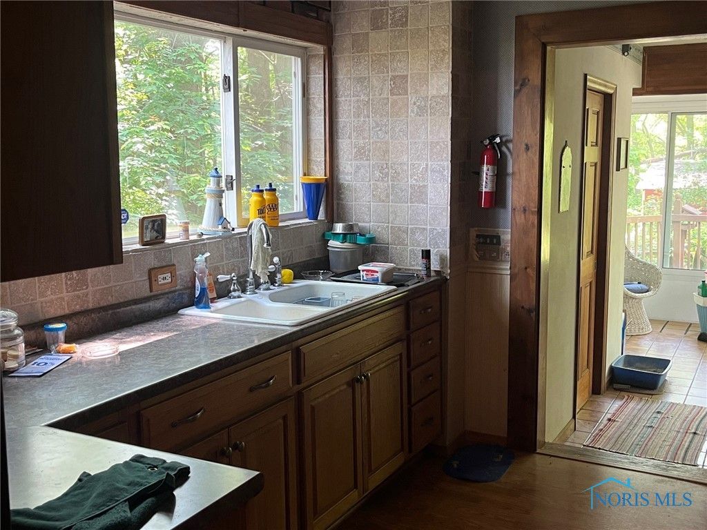 148 YEAR OLD FARMHOUSE ON OVER 3 ACRES IN SWANTON TOWNSHIP. BRAND NEW $25,000 METAL ROOF. SPACIOUS ROOMS. VERY NICE WOODWORK THROUGHOUT. HARDWOOD PANELED FAMILY ROOM WITH FIREPLACE. DEN/OFFICE HAS BUILT IN BOOKSHELVES. HUGE PRIMARY BEDROOM. AIRY SUNROOM AND VERY LARGE NEWER REAR DECK. OPEN FRONT PORCH, TOO. 4 OUTBUILDINGS IN VARIOUS CONDITION. LOTS OF MATURE TREES. GOOD WATER-WELL IS 74 FEET DEEP. SHORT DRIVE TO ALL OF THE CONVENIENCES IN SWANTON. BEING SOLD "AS IS".