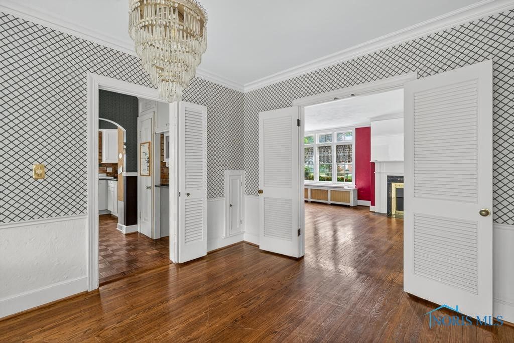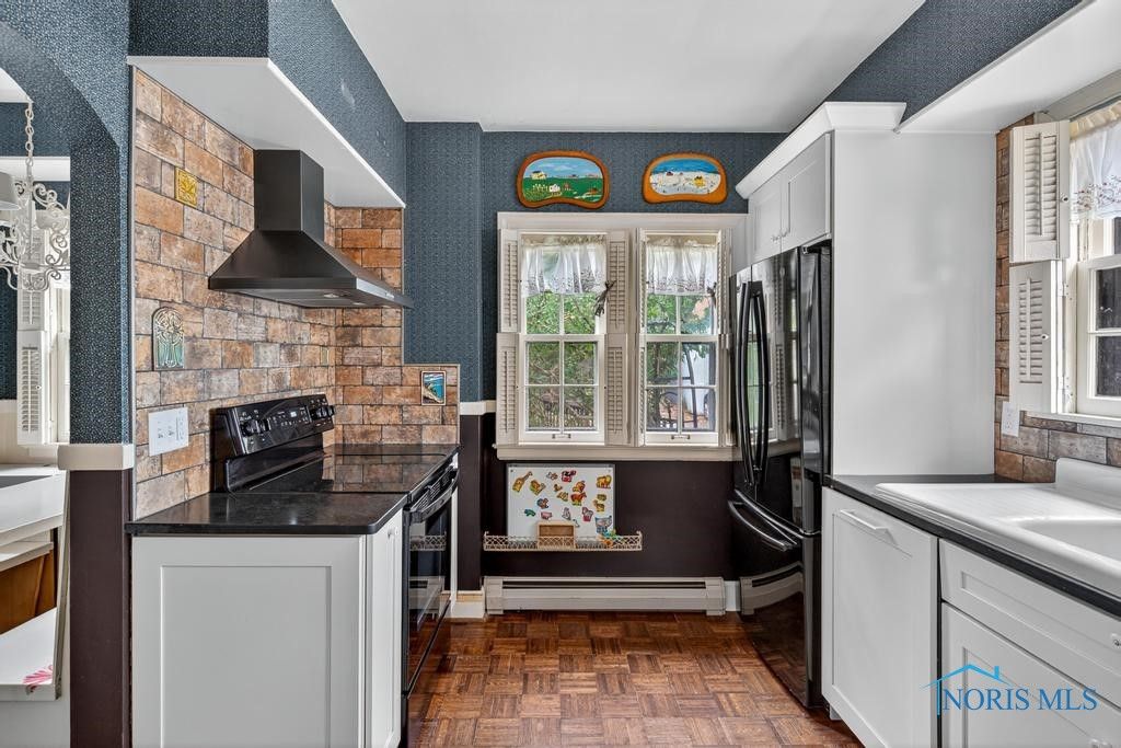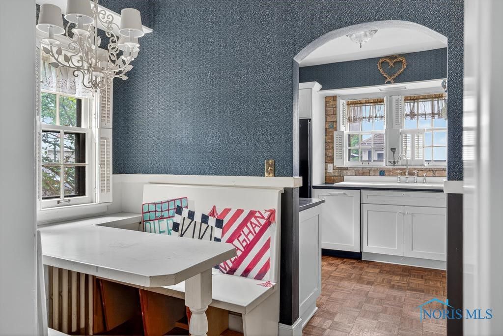 Grand Tudor with four levels of finished living space in a prime Ottawa Hills location"”minutes to top-ranked schools. Elegant main level with formal living & dining rooms, den, enclosed porch, and an updated kitchen featuring a custom Detroit-based Pewabic tile backsplash, shaker cabinetry, granite counters, and an eat-in nook. Second level: 4 bedrooms & 2 tiled baths, including a multi-room primary suite with office. Finished 3rd floor with full bath and Carol Sicha "treehouse" mural bedroom. Mini-splits for A/C; boiler heat. Finished lower level. Exceptional"”get inside!