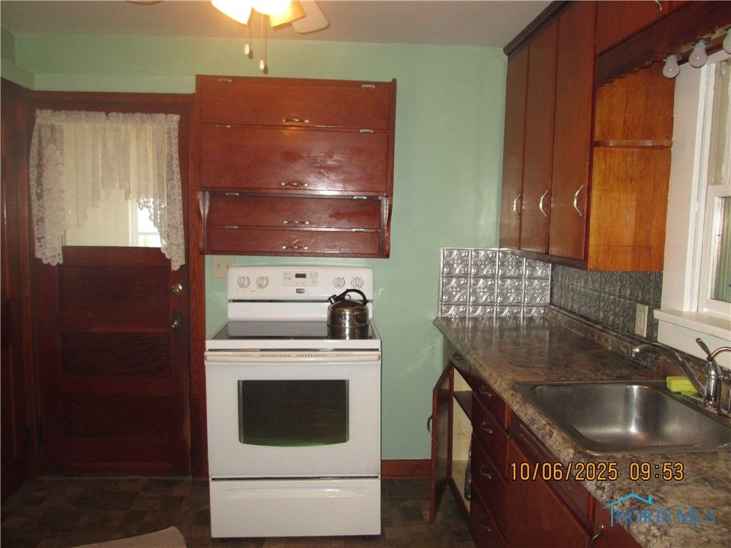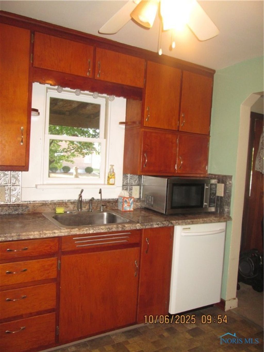 Cozy ranch with full basement. This home offers 2 bedrooms, 1 bathroom, a full basement, and a 1 car detached garage. Kitchen with appliances and sufficient cabinet space. This home offers built-in cabinets in one of the bedrooms. Breezeway to the garage plus a fenced-in yard.
