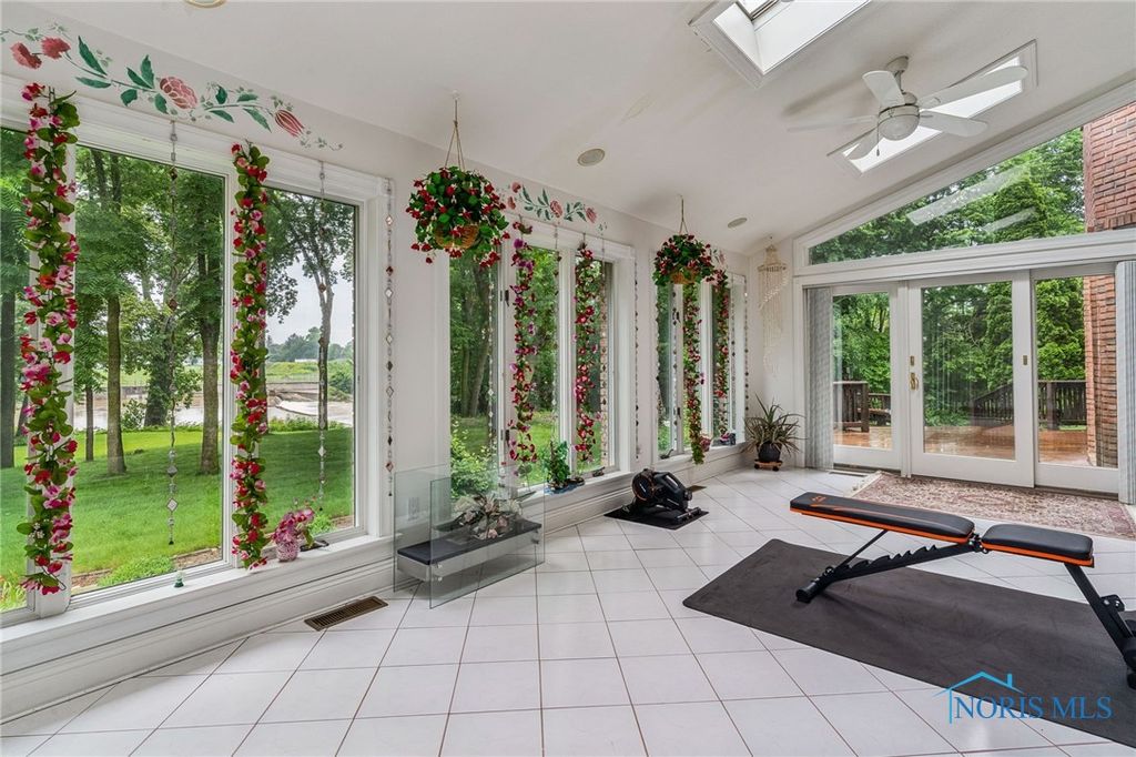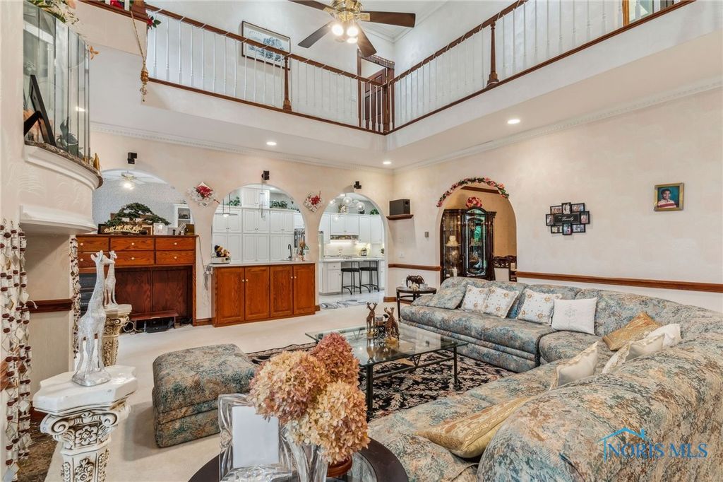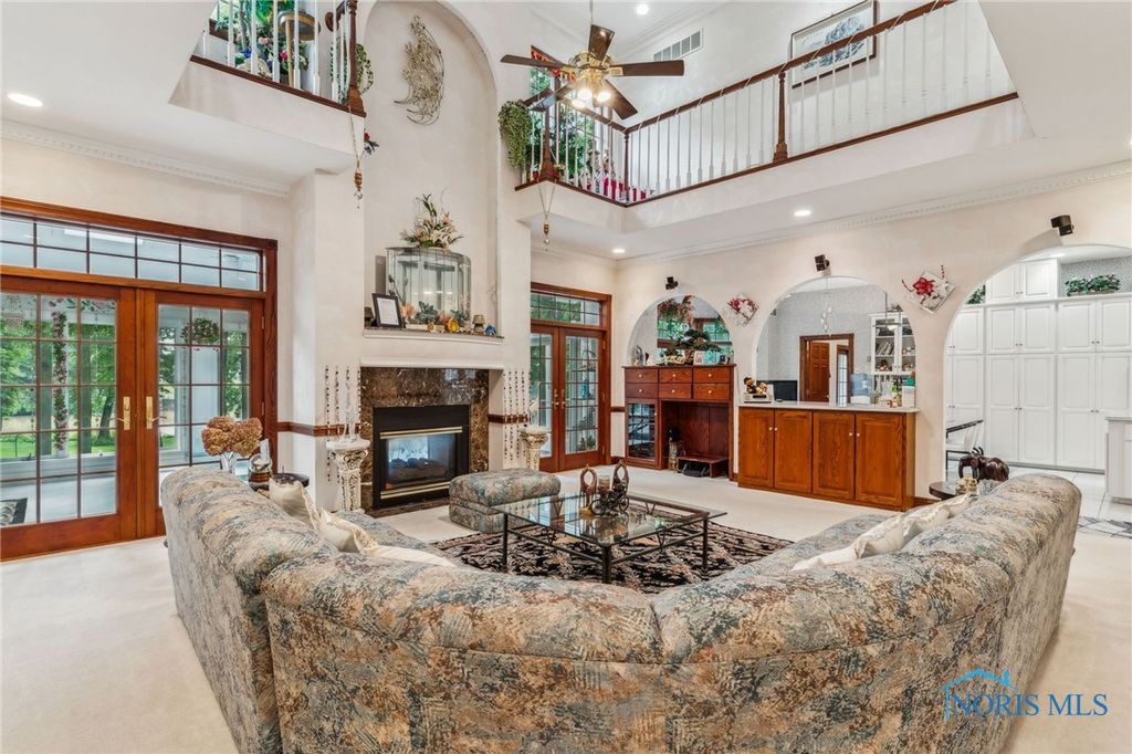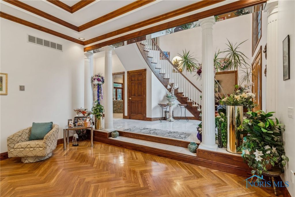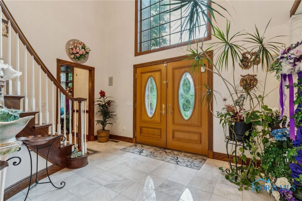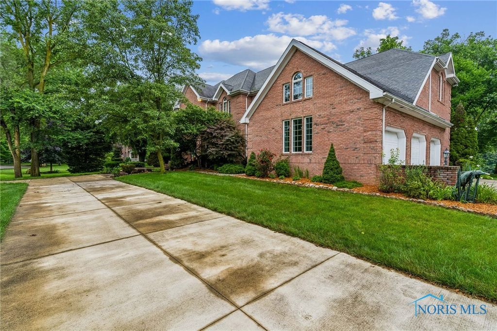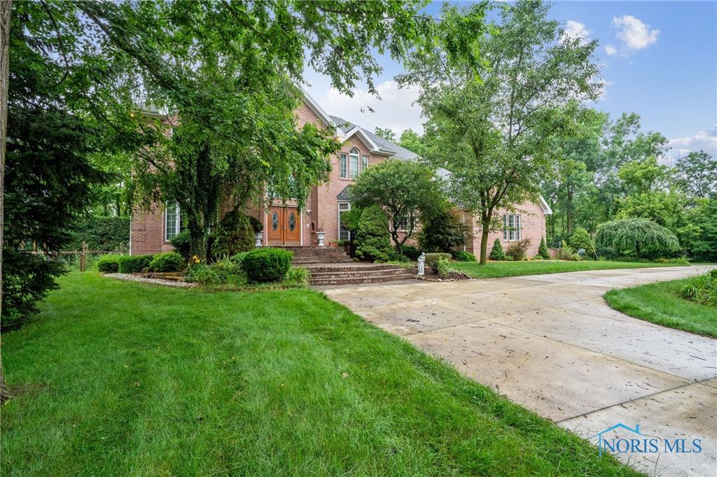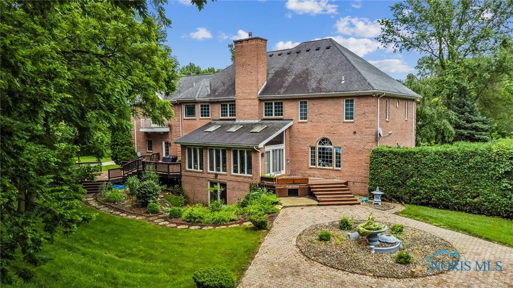 Timeless full-brick colonial on Sycamore Woods Lane in Tiffin, Ohio with waterfront views. Built by local builder, Lenny Clouse, this home features Italian marble, custom plaster ceilings, chef's kitchen, sunken living room, den, and sunroom with dramatic double-sided fireplace. Enjoy a spacious master suite with balcony, finished walk-out basement, in-ground pool, 2-tier deck, and circular drive. Boatable river access. Perfect for entertaining inside and out.