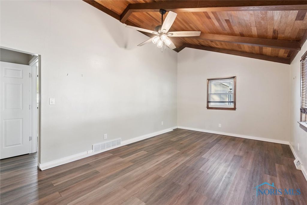 Welcome to this beautifully updated 3-bedroom, 1-bath ranch that blends comfort and style. Step into a vaulted living room with warm wood beam accents and all-new vinyl plank flooring throughout. The kitchen boasts of newer cabinets and tasteful backspalsh and bathroom shines with modern finishes, including new floor tile, vanity, & tub. Enjoy peace of mind with a newer roof (2017), gutters, and gutter guards. Outside, the fully fenced yard features a brand-new 10x20 shed (May 2025). All appliances stay, and possession is at close! Don't miss this gem!