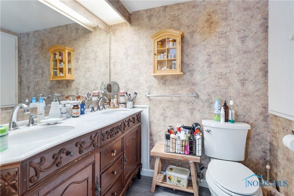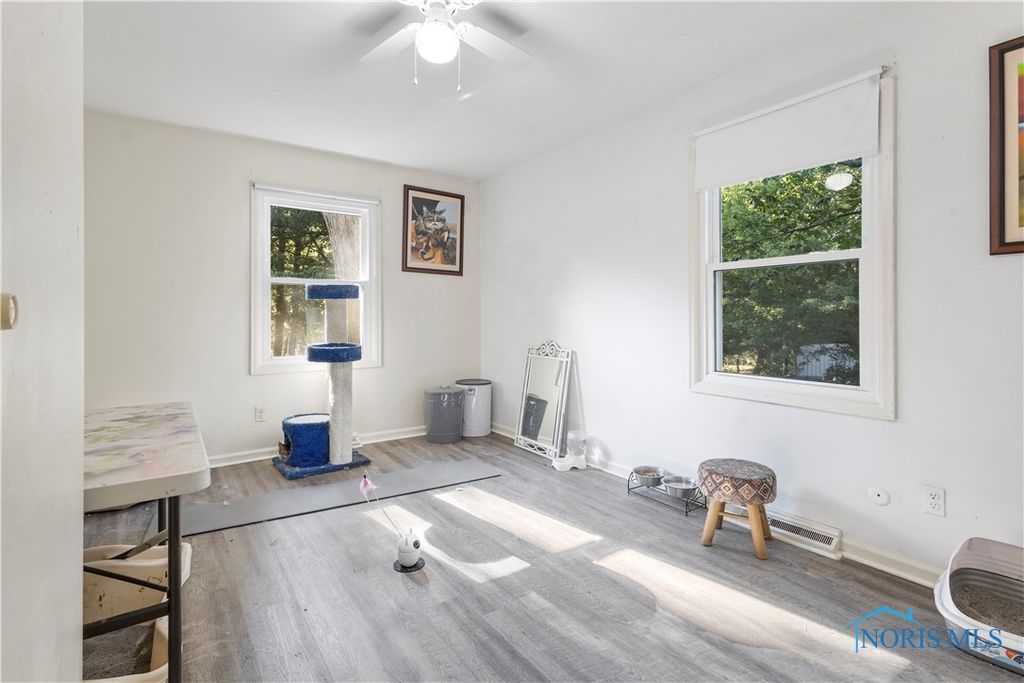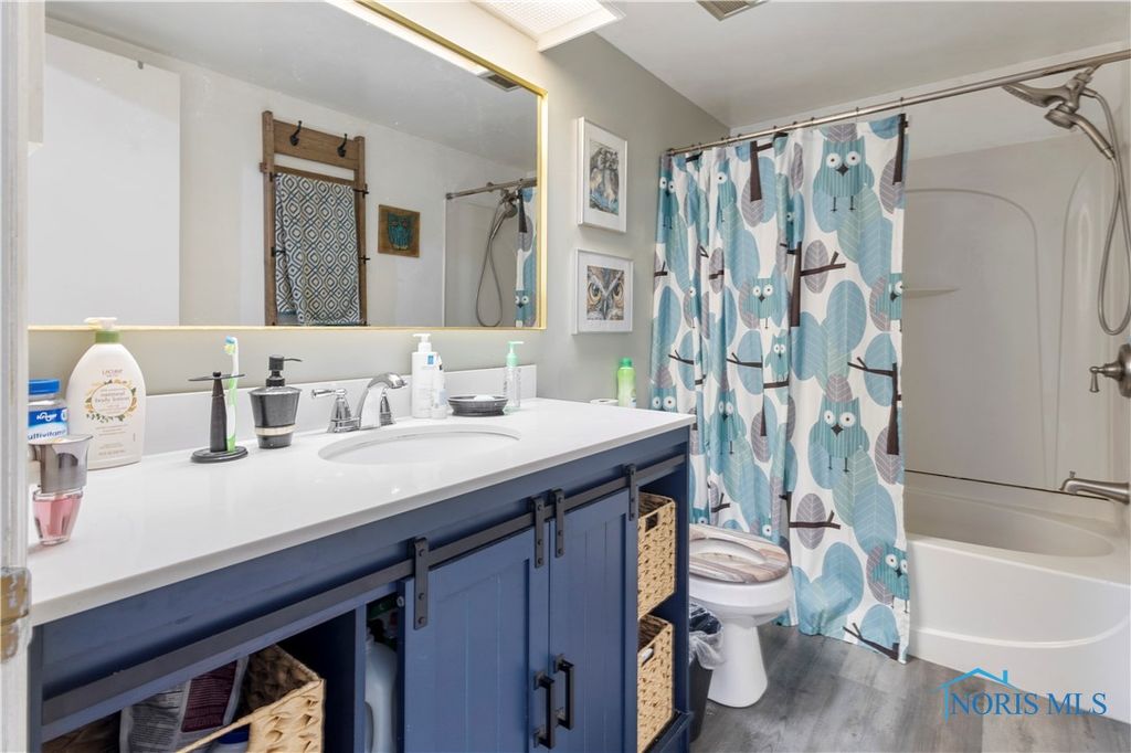 Spacious home steps away from Olander Park entry! Kitchen features quartz countertops w/ample storage; wood floors & crown molding on main floor plus Family Room w/WBFP opens to a stunning 3-season Sunroom w/slate floors & skylight. Primary Ensuite includes walk-in shower & double sink vanity; Bedrooms generously sized w/ceiling fans. Bathroom updates include new vanities & LVP flooring. Enjoy a finished basement w/large rec-room. Delightfully sits on 1/4 acre, fully fenced backyard, 1/2 basketball court & patio. MAJOR UPDATES: Furnace & A/C 2023, Roof 2022, Windows (lifetime warr), HWT 2021