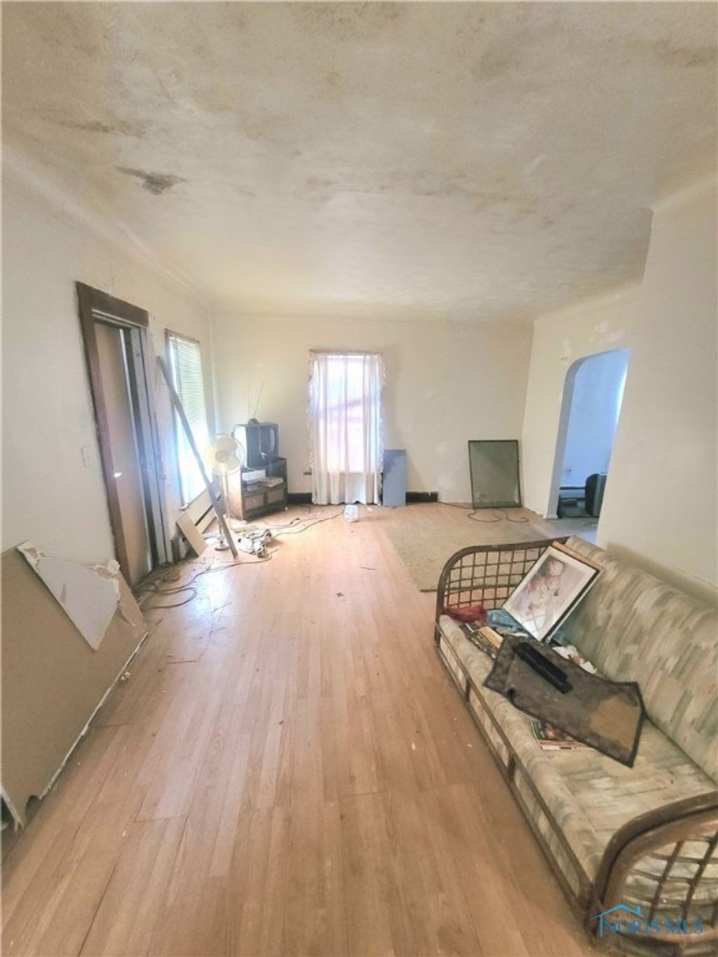 This 1109 sqft home has a large living room, dining room and kitchen on the main level with 3 bedrooms and 1 full bath upstairs on the second level. Bedrooms have nice hardwood floors. Detached garage off of the alley. Also has a basement. Home is being Sold AS IS.