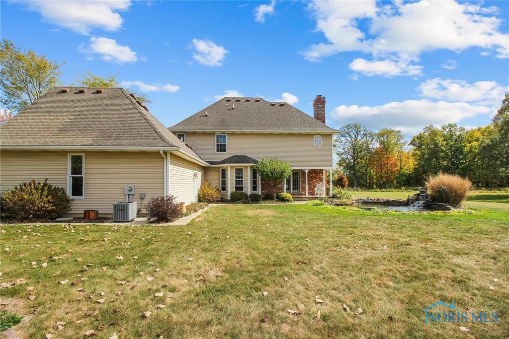 Escape in this custom-built Victorian home, situated on over 15 acres of tranquil countryside. 3 Bedrooms/3 baths spread across 2600+sqft, this home features an inviting front porch. Step inside to a breathtaking foyer w/an open staircase, leading to LR complete w/fireplace. Master suite boasts 10' ceiling, jetted tub & walk-in closet. Kitchen w/solid surface countertops & a charming breakfast nook. Tranquil back porch w/serene views of a small pond, stream & waterfall. Woods for exploring, plus Sugar Creek frtg, this property is for nature lovers. Just 20 minutes to shopping in Perrysburg.